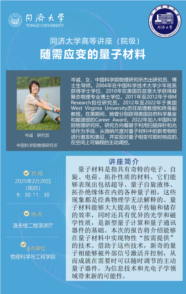 量子材料是指具有奇特的电子、自旋、电荷、拓扑性质的材料。它们能够表现出包括超导、量子自旋液体、拓扑绝缘体在内的各种量子相,这些现象都是经典物理学无法解释的。量子材料能够大大提高电子传输和储存的效率,同时还具有优异的光学和磁学性质,是新型量子计算和量子通讯器件的基础。本次的报告将介绍能够在量子材料中实现物性“按需提供”的技术。借助于这些技术,新奇的量子相能够被外部信号激活并控制,从而成就在需要时可以随时调节的主动量子器件,为信息技术和光电子学领域带来新的可能性。