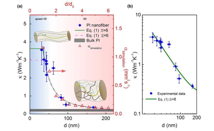 图2 利用分子链有序度调控非晶聚合物纳米纤维热导率(Copyright National Science Review(2018)