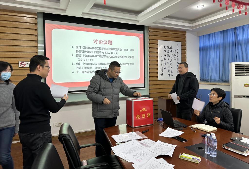 经大会各位教代会代表认真审议和讨论,用无记名投票方式进行表决,大会全票通过了四项规章制度:《物理学院2023年度绩效发放方案》、《买球官方网站在职教职工福利、慰问、困难补助暂行办法(修订)》、《买球官方网站教职工代表大会工作实施办法(修订)》和《买球官方网站教职工代表大会提案工作实施办法(修订)》。