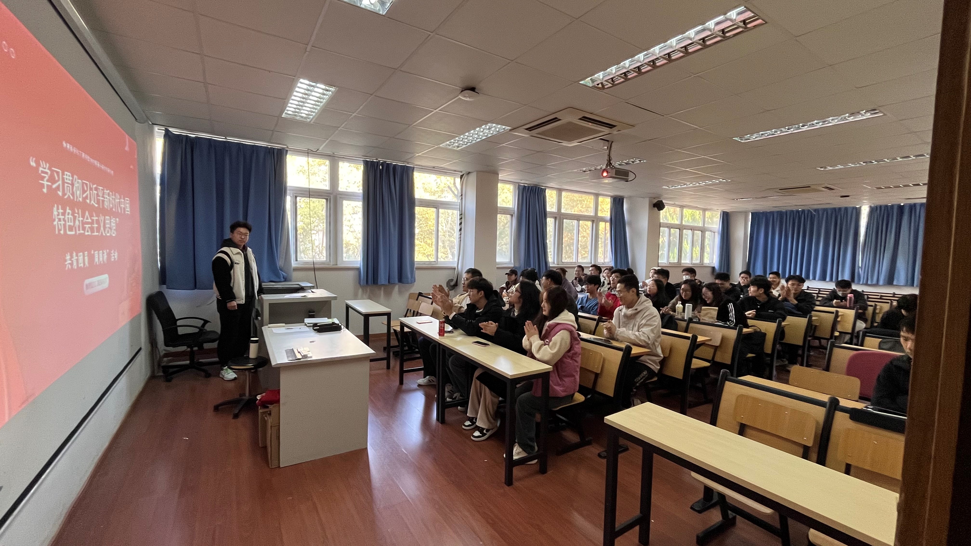 买球官方网站2023级硕士研究生团支部成立于2023年9月3日,现共有团员53人,其中党员(含预备党员)11人。在学院团委的指导下,团支部于2023年11月17日下午在物理馆212教室开展“周周讲”活动,本次团日活动主题为“学习贯彻习近平新时代中国特色社会主义思想”。