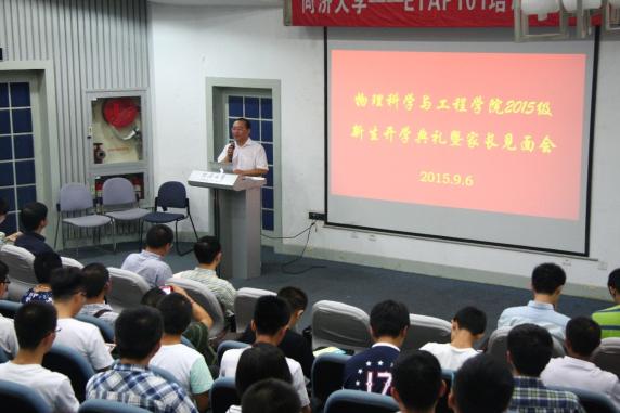 典礼由学院党委副书记考书健主持,副院长羊亚平教授在开学典礼上讲话,他首先对新生们成为同济物理人表示热烈的欢迎与祝贺,并在讲话中回顾了物理学院的发展历史,对新生提出了从中学到大学转变的四点要求,希望新生们能够发现并坚持自己的兴趣,积极开展跨学科、跨专业的学习,成为新世纪的栋梁之才。