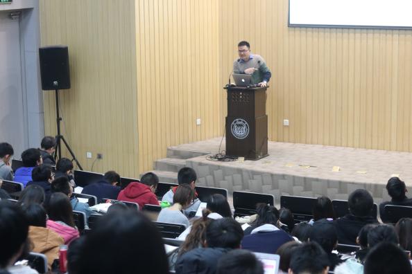 首先由买球官方网站党委副书记考书健老师致欢迎词。随后,买球官方网站物理学院特聘教授任中洲老师和买球官方网站物理学院严钢老师为在场嘉宾和与会学生做了深入浅出的报告,并对同学们的疑问进行了详细的解答。