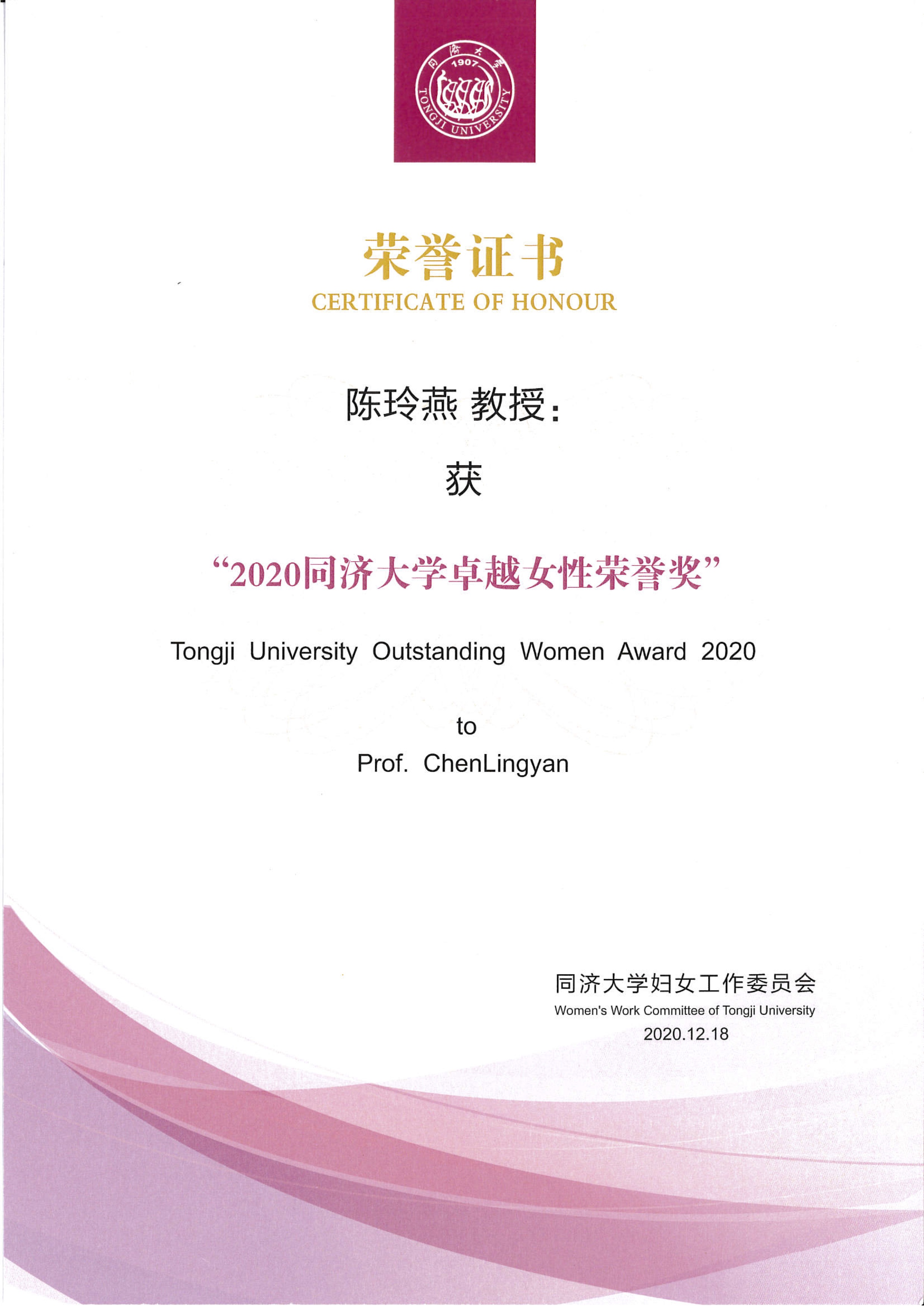近日,买球官方网站妇女工作委员会组织开展了第六届“买球官方网站卓越女性奖”评选和表彰活动,买球官网教授、博士生导师陈玲燕老师荣获“买球官方网站第六届卓越女性荣誉奖”。