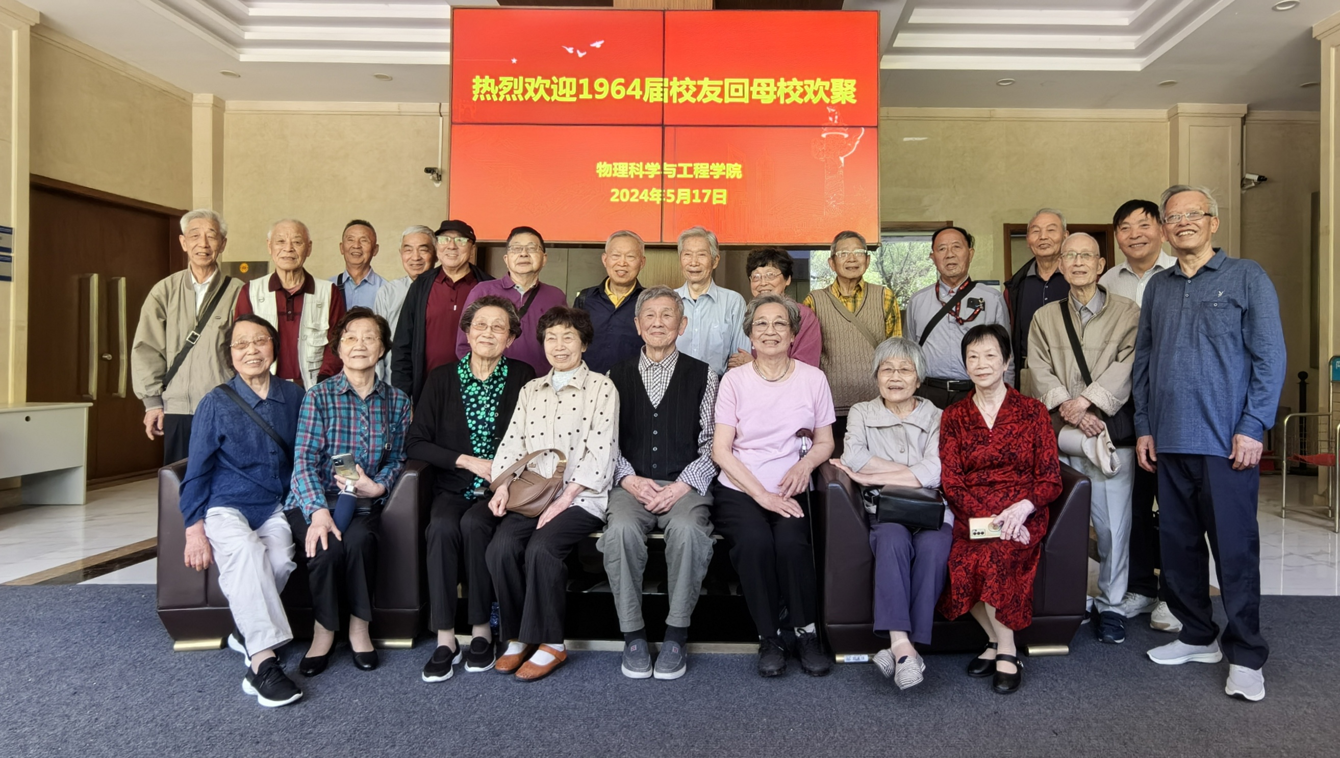 2024年5月17日,买球官方网站迎来了1964届物理学院校友。他们从祖国各地赶赴母校,虽然均已八十多岁,但都神采奕奕、红光满面。毕业六十年,又逢买球官方网站117年校庆,老同学们兴奋而激动。他们的到来不仅是对母校的一种致敬,也是对自己青春岁月的一次回顾和怀念。