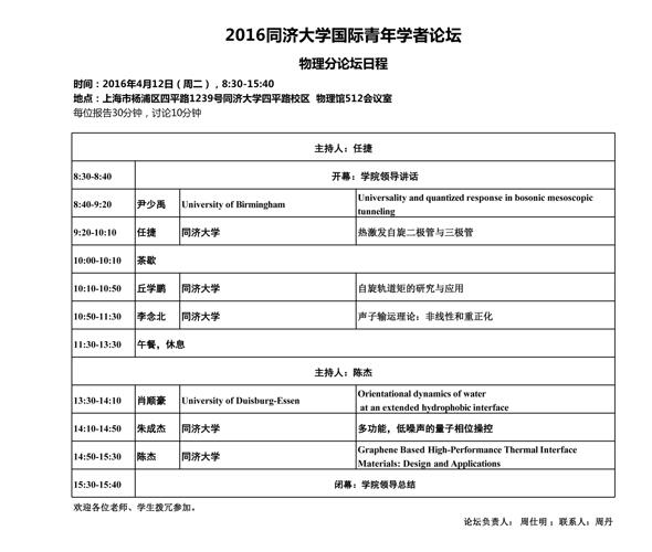 [04月12日]2016买球官方网站国际青年学者论坛物理分论坛日程
