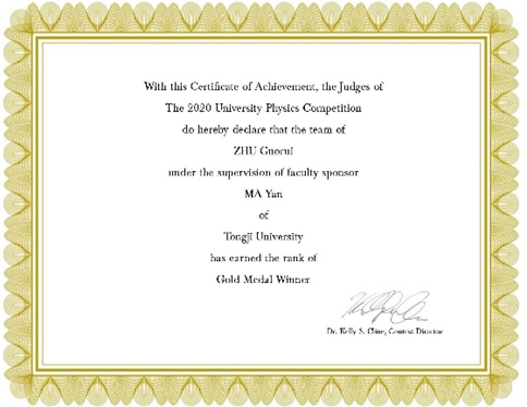 近日,2020年国际大学生物理竞赛(The 2020 University Physics Competition)成绩揭晓,我校学生取得丰硕成果,共获得金奖2项、银奖8项、铜奖8项及完成奖10项。这也是同济学子自2015年参赛以来,首次获得金奖。 ...