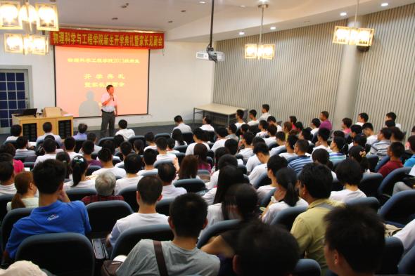 2013年9月1号物理学院在瑞安楼2楼报告厅召开了本科新生开学典礼暨家长见面会。